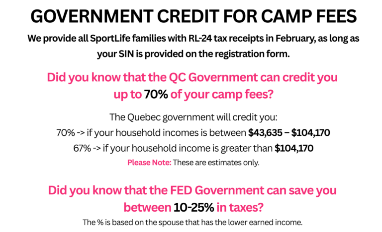 Payment can be made by: E-transfer to evan@sport-life.ca