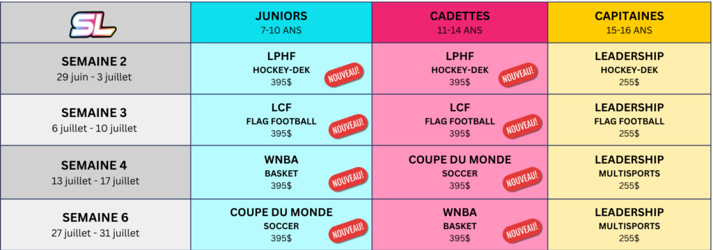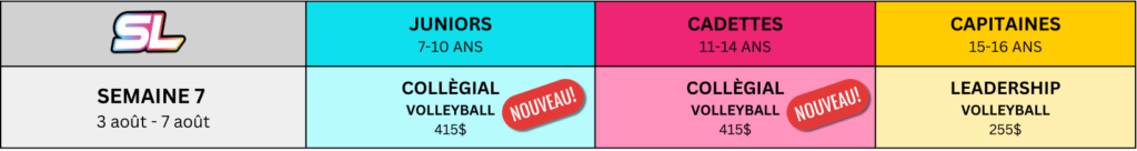SEMAINES SPÉCIALISÉES - DIVISION FÉMININE