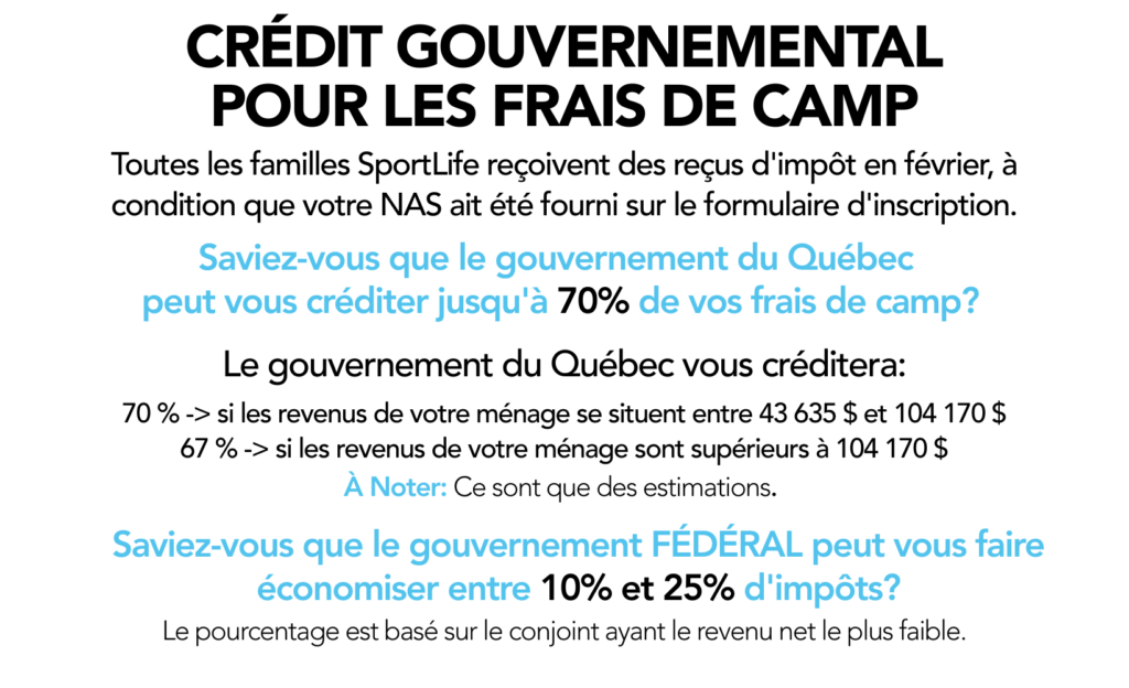 Annulation de camp : 50 $ de frais administratifs/semaine annulée.