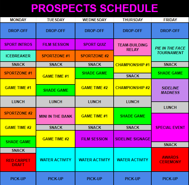 The draft will be nearly identical to what is experienced in professional sports, because draft day is one of the most special days in a young athlete’s life. We ensure that everyone will be included in our specifically designed live draft! All our athletes will get the opportunity to see their name on the big draft board. Each player will get called up to the podium, take a picture with their coach and get the ultimate draft experience! Lights, Cameras & Action make this the best way to kick off a week at SportLife!