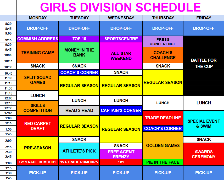 Players will take part in various skill-developing drills, with each drill focusing on a unique set of skills. Each coach will be responsible to demonstrate and teach the athletes the proper technique to craft that particular skill. This is a great chance for our athletes to put their skills on display, as the coaches will be “scouting” their performance, and taking detailed notes of each athlete in preparation for the draft later that day!