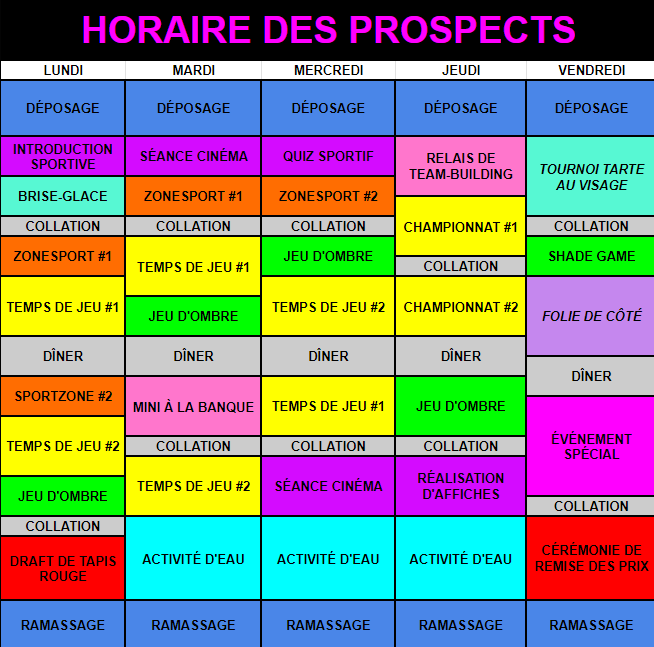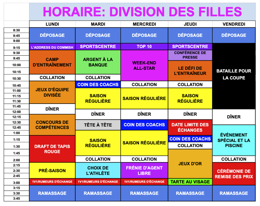 HORAIRE D'ACTIVITÉS