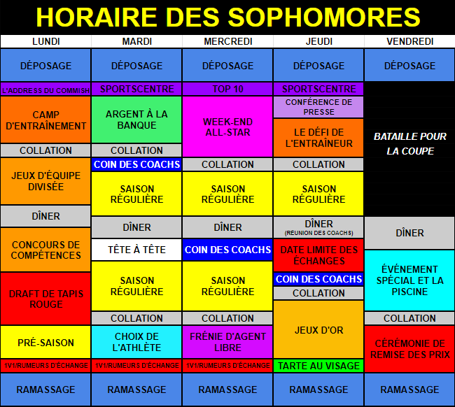 Ce segment de la semaine est une expérience de renforcement d’équipe, permettant aux joueurs de devenir un groupe plus soudé. Les entraîneurs dirigeront des entraînements tout au long de la semaine pour permettre à l’équipe de travailler ensemble et de bâtir une chimie de groupe de façon amusante et productive. Les entraîneurs réviseront les stratégies de match et développeront la compréhension intuitive du jeu chez l’athlète.