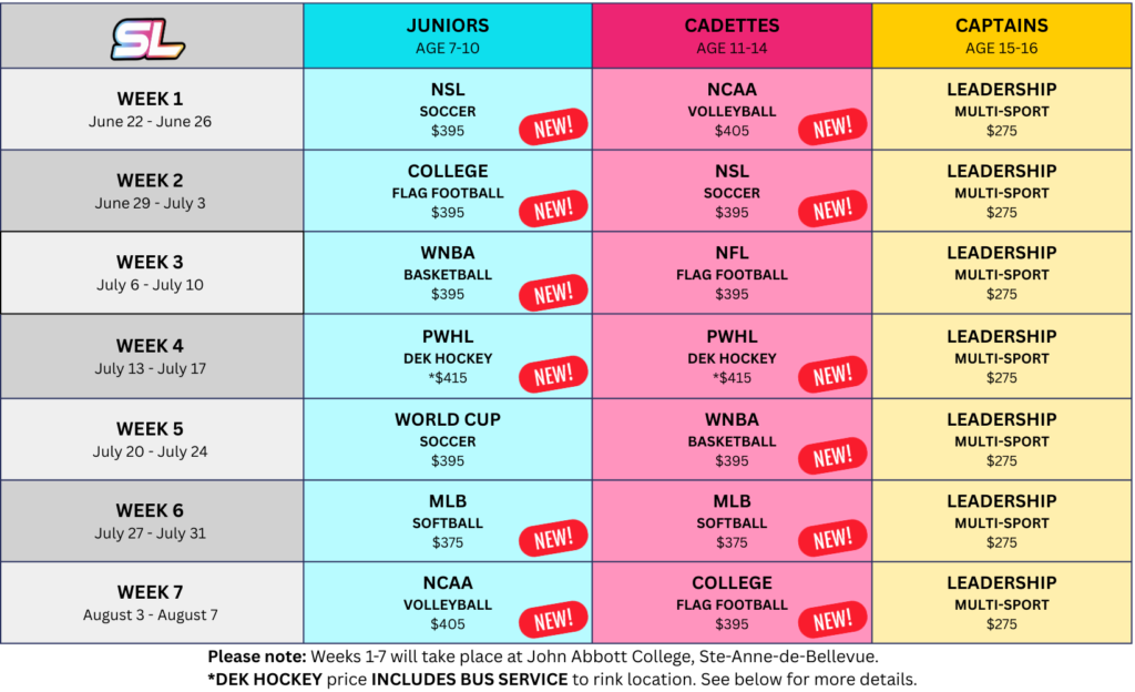 SportLife will provide a bus service that will run from DDO to the camp, and back to DDO!