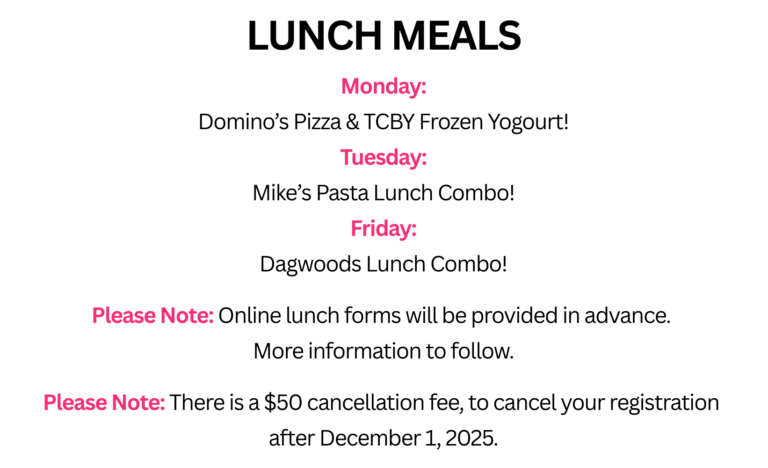 Drop-off: 9:00am – 9:30am (Mon & Tue)